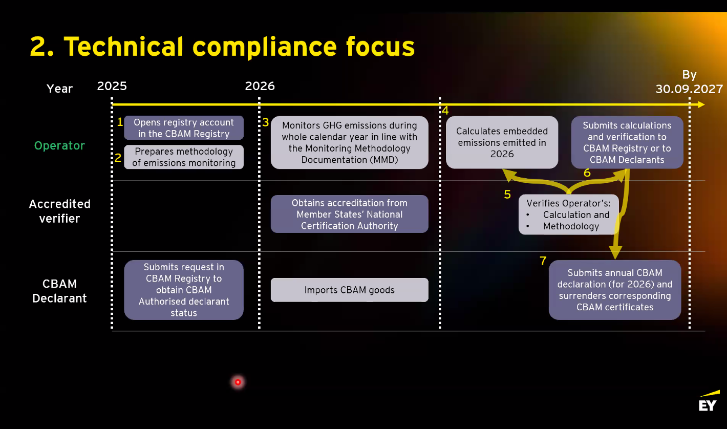 Wojciech Zalevski, Senior Manager at EY Consulting, delivered practical guidance on CBAM compliance in the aluminum and steel industries, focusing on emissions accounting and reporting, data verification, and interaction procedures between exporters and importers.